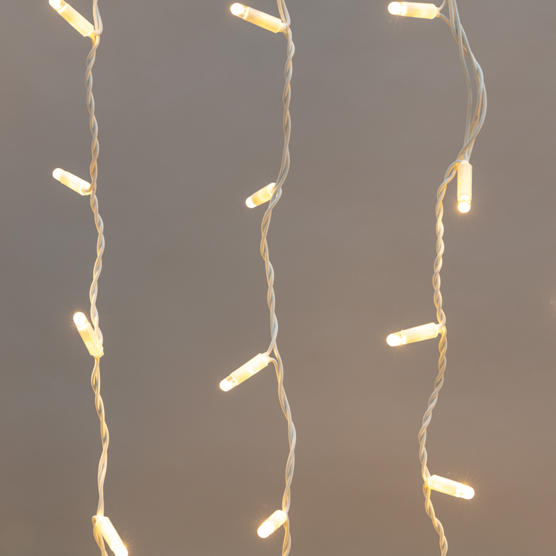 Гирлянда имеет теплый белый цвет свечения и облегченную шину без Т-коннекторов.