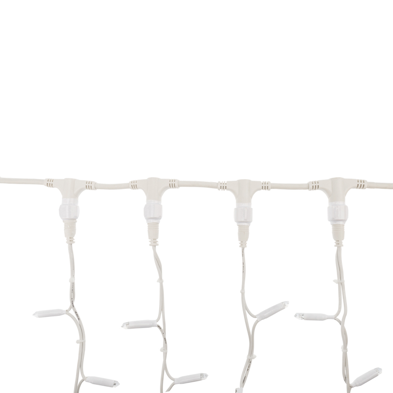 Гирлянда имеет белый цвет свечения. Светодинамические эффекты становятся доступными только при подключении гирлянды к сети через специальный контроллер.