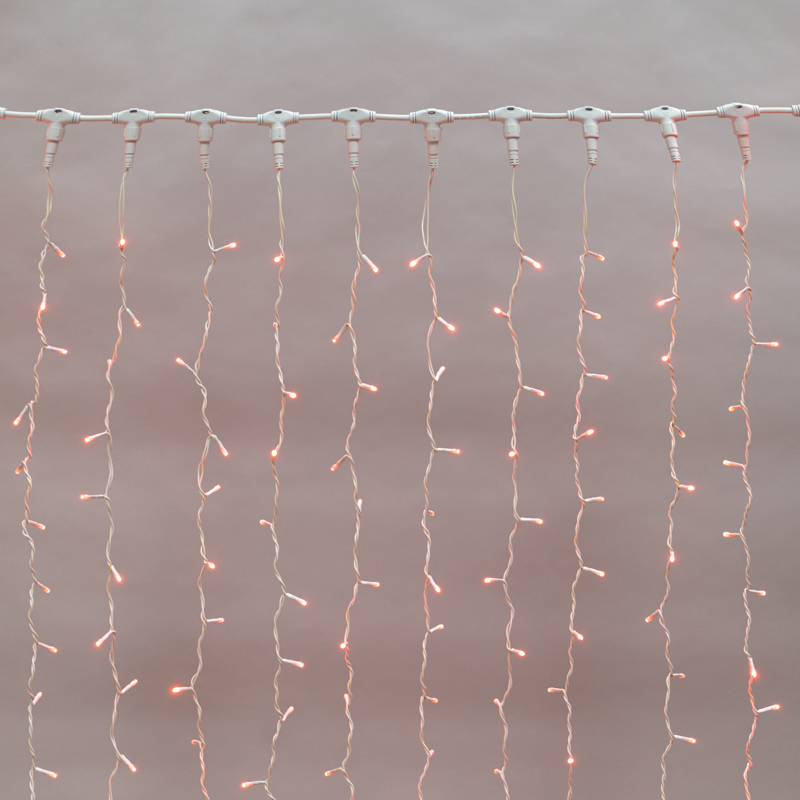 Светодиодная гирлянда Занавес (Дождь) представляет собой гибкий горизонтальный шнур-шину 2 м, к которому через определенные промежутки крепятся 20 вертикальных нитей равной длины со светодиодами.