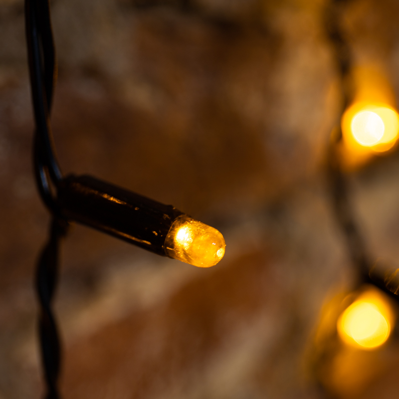 Гирлянда имеет желтый цвет свечения. Светодинамические эффекты становятся доступными только при подключении гирлянды к сети через специальный контроллер.