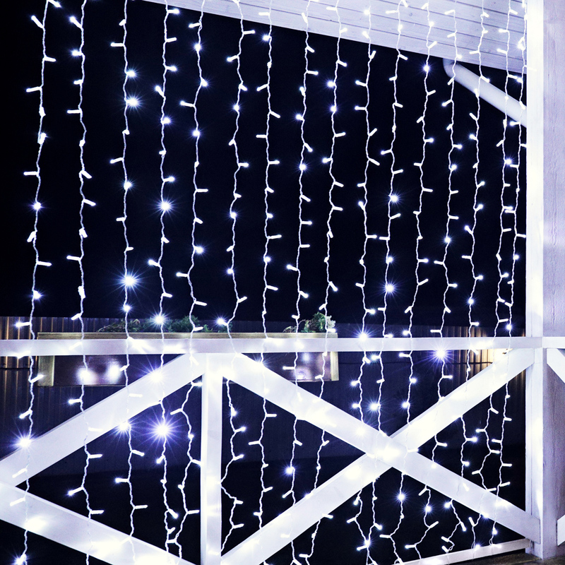 Гирлянда светодиодная Занавес 2х3м 448 LED БЕЛЫЙ прозрачный ПВХ IP65 постоянное свечение 230В нужен блок 303-500-1 NEON-NIGHT