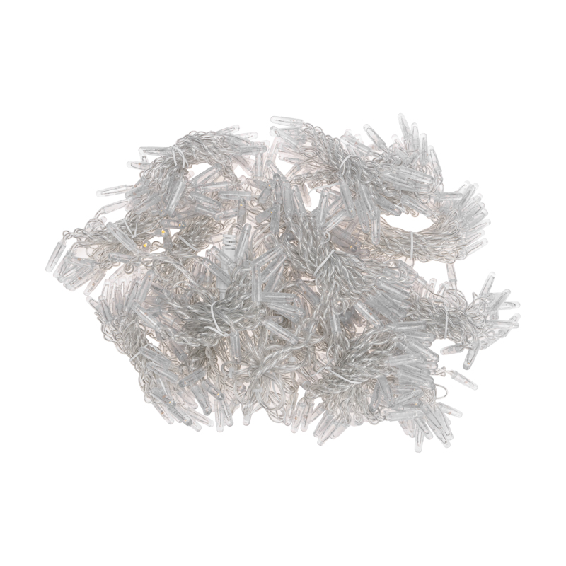 Светодиодная гирлянда Занавес (Дождь) представляет собой гибкий горизонтальный шнур-шину 2 м, к которому через определенные промежутки крепятся 16 вертикальных нитей равной длины со светодиодами.
