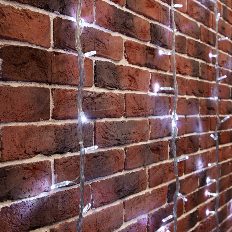 Гирлянда имеет белый цвет свечения и обладает эффектом водопада.