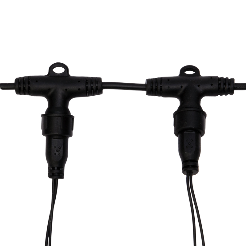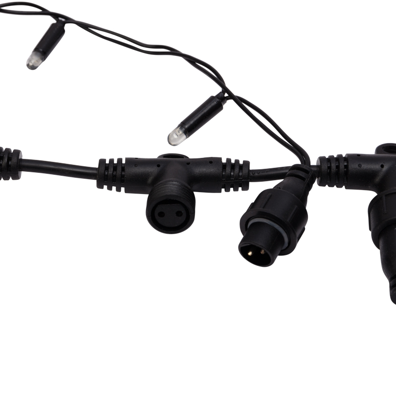 На концах шины располагаются коннекторы, которые предназначены для последовательного соединения нескольких гирлянд в большой занавес для украшения больших площадей или объемных объектов.