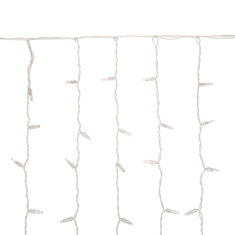 Светодиодная гирлянда Занавес (Дождь) представляет собой гибкий горизонтальный шнур-шину 2 м, к которому через определенные промежутки крепятся 20 вертикальных нитей равной длины 0,8 м со светодиодами.