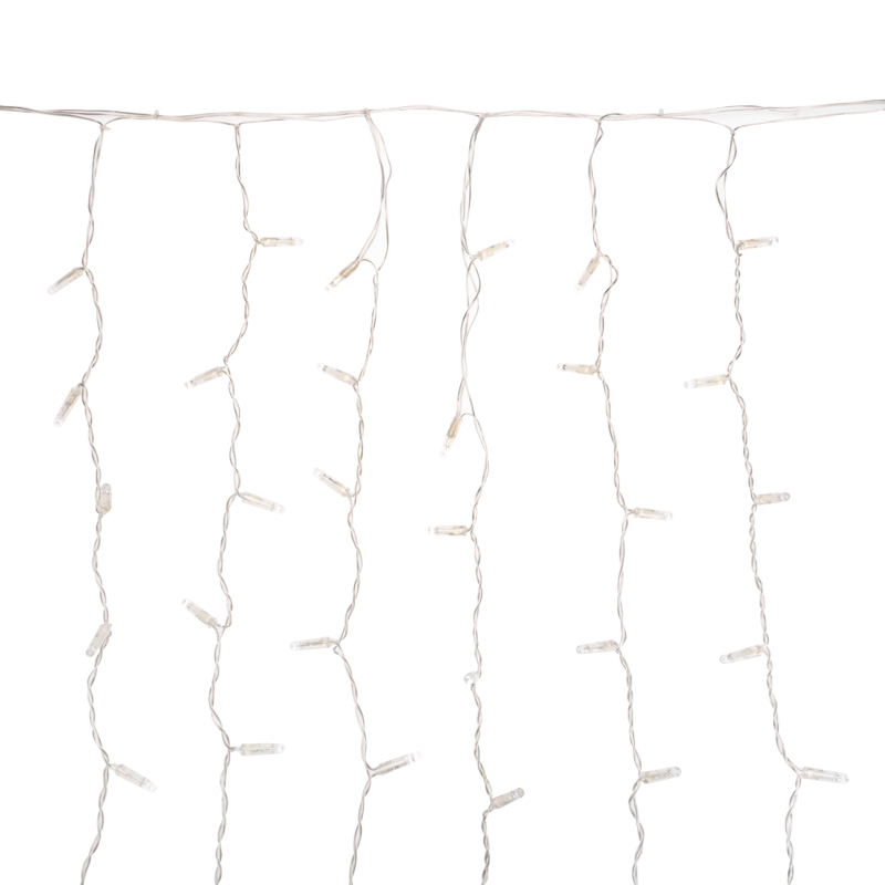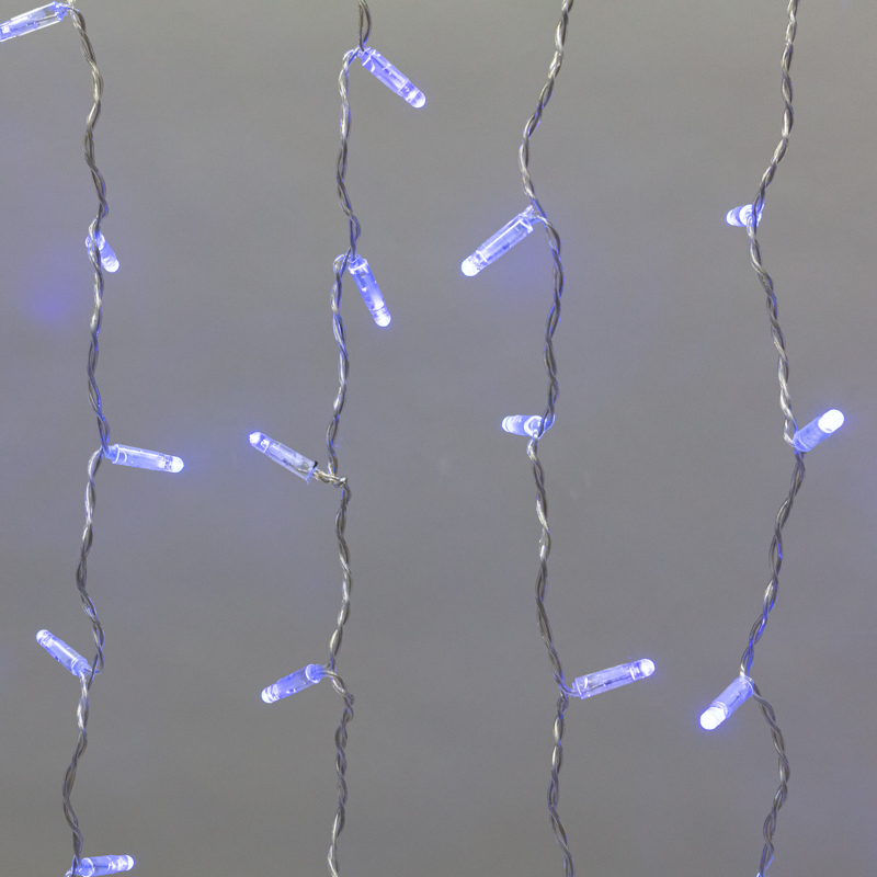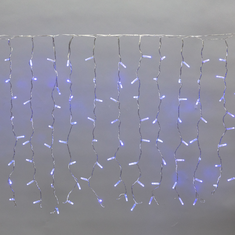 Светодиодная гирлянда Занавес (Дождь) представляет собой гибкий горизонтальный шнур-шину 2 м, к которому через определенные промежутки крепятся 20 вертикальных нитей равной длины 0,8 м со светодиодами.