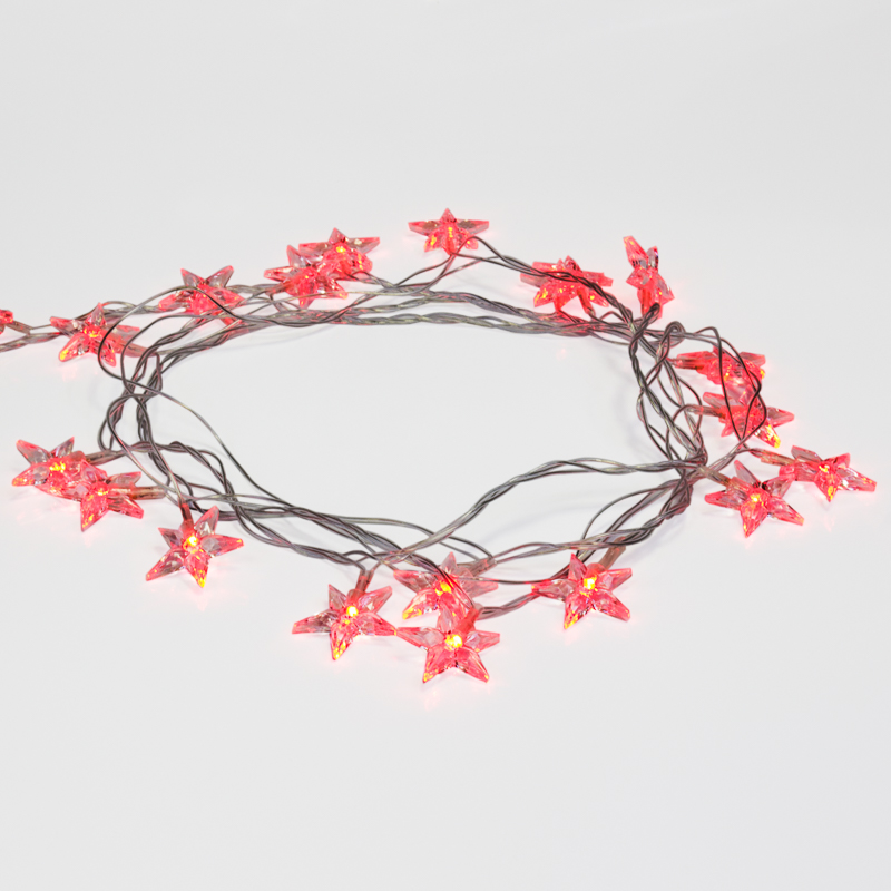 Светодиодная гирлянда «Звездочки» поможет создать праздничную атмосферу в доме и ощущение сказки. Украшение представляет собой серебристый шнур в прозрачной ПВХ оболочке, с расположенными на нем светодиодными огоньками. Двадцать насадок, выполненных в виде пятиконечных звезд, прочно расположены на светодиодах красного цвета. Светодиоды безопасны, экономично расходуют электроэнергию, не нагреваются, стабильно работают долгое время. Гирлянда «Звездочки» станет гармоничным дополнением наряда новогодней елки или самостоятельным декором интерьера. Питание гирлянды от сети 230 В.