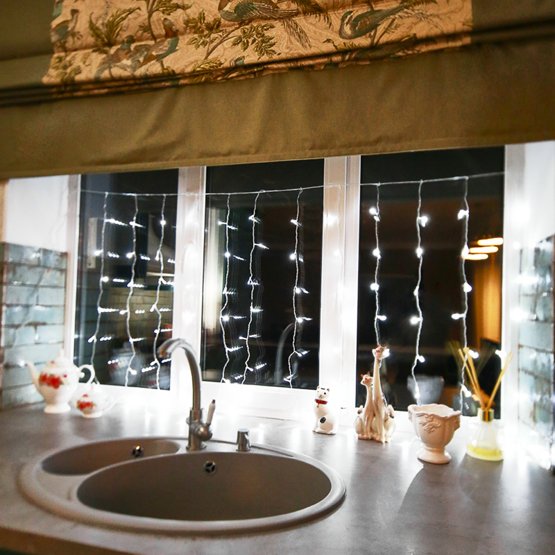 Гирлянда «Дождь» 1,5×1 м, выполнена в виде занавеса и прекрасно подходит для оформления окон в жилых и офисных помещениях. 96 светодиодов, излучающих белый свет, расположены по всей длине гибкого провода. Светодиоды практически не нагреваются во время работы, экономно расходуют энергию и ярко светят на протяжении всего срока службы. Отличительное преимущество интерьерных гирлянд: длина шнура питания 3 метра — этого достаточно, чтобы подключить изделие к розетке в любом удобном месте без использования удлинителей.