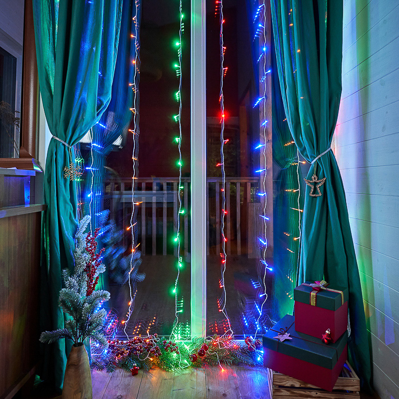 Гирлянда «Дождь» – эффектное интерьерное украшение, способное подарить яркие впечатления гостям и внести атмосферу праздника в любую обстановку. Светодиодный занавес высотой 2 метра дает возможность оформить окна в помещениях с высокими потолками, создать уникальный декор фотозоны, обустроить нишу или открытый проем. Трехметровый шнур питания позволяет подключить гирлянду в электросеть без удлинителя. 240 светодиодов «мультиколор» загораются яркими разноцветными искрами и меняют режимы при помощи контроллера с 8 опциями.
