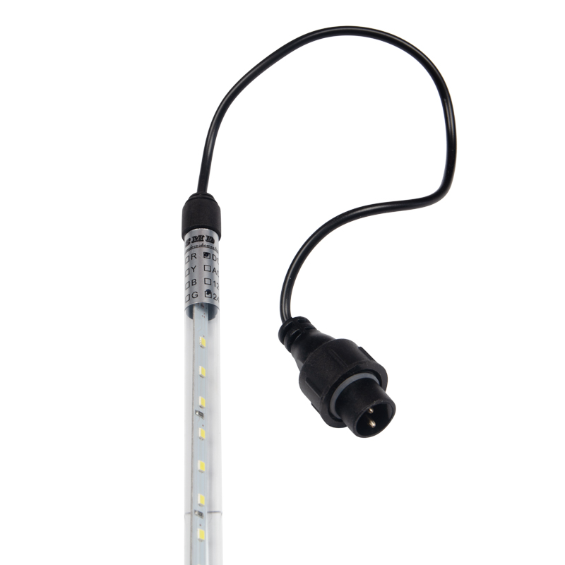 Гирлянда работает от напряжения 24 В, трансформатор (блок питания) поставляется в комплекте. К одному трансформатору можно подсоединить 50 м гирлянды.