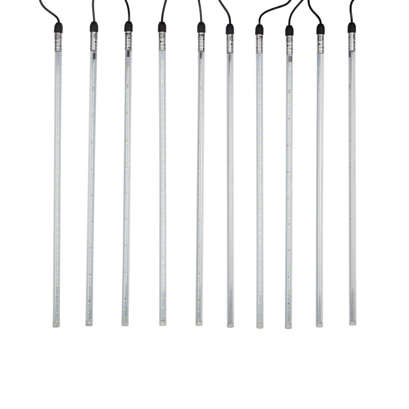 Гирлянда представляет собой готовый к использованию комплект: 10 пластиковых трубок и каучуковая шина, на которой расположены коннекторы с заглушками.