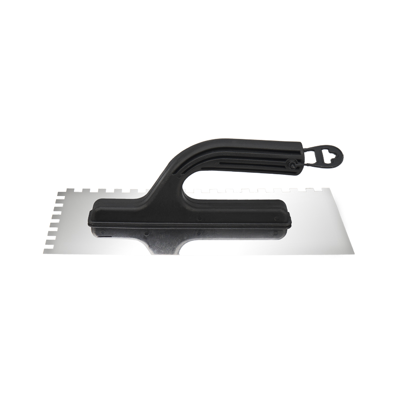 Гладилка прямая (зубчатая) изготовлена из нержавеющей стали, оснащена эргономичной пластиковой ручкой. Используется для качественного нанесения различных сухих смесей, их распределения по поверхности, а также сглаживания неровностей и швов. В ремонтных, а также отделочных работах гладилка малярная и штукатурная используется повсеместно. Она незаменима в случаях, когда необходимо нанести много раствора тонким слоем.