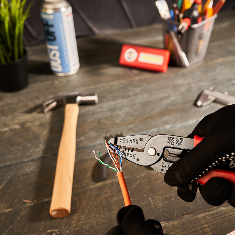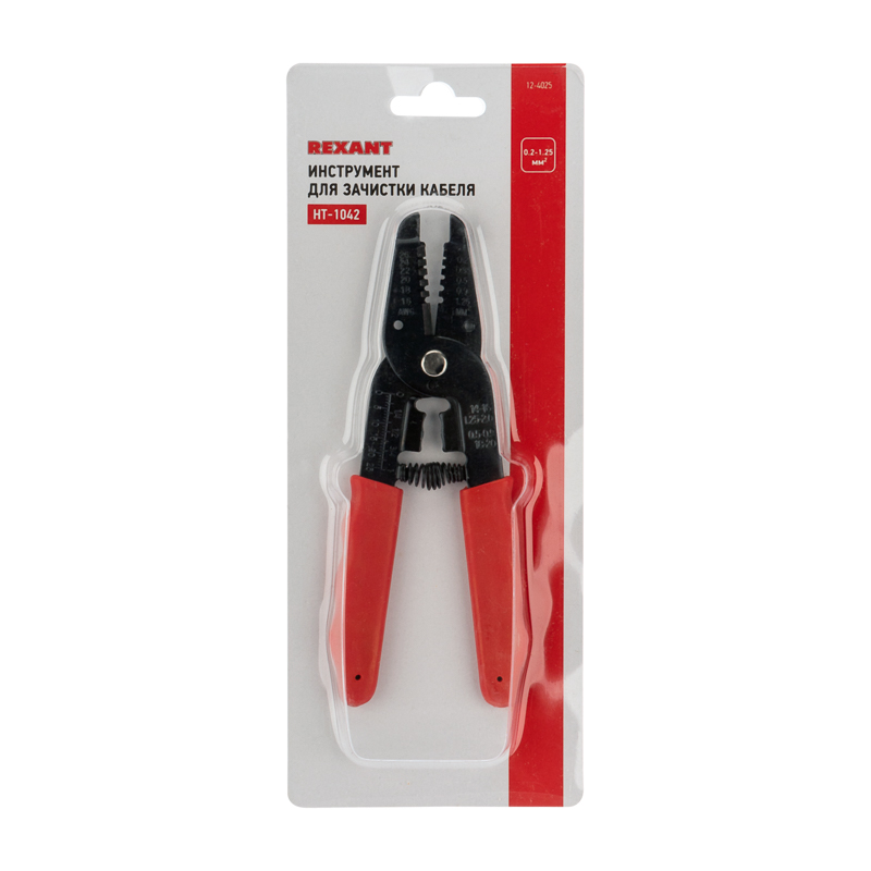 Стриппер HT-1042 предназначен для снятия внешней изоляции одножильного и многожильного кабеля сечением 0,2–1,25 мм². Также инструмент осуществляет зажим, обработку и обрезку кабеля стальных и медных проводников, формирование монтажных петель.