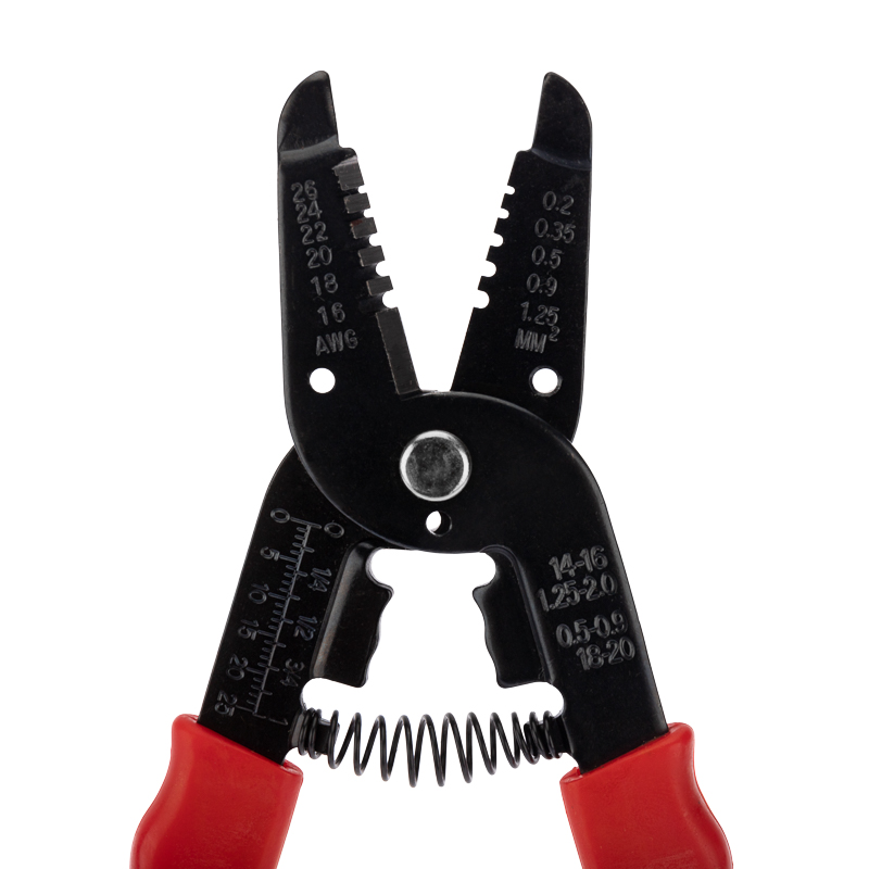Корпус стриппера выполнен из высокопрочной инструментальной стали, благодаря чему устойчив к механическим воздействиям и имеет продолжительный срок службы. Специальная конструкция инструмента с маркировкой позволяет зачищать изоляцию без повреждения жилы провода. Оснащен и возвратной пружиной, которая обеспечивает обратный ход рукояток и упрощает работу с инструментом. Также в стриппере предусмотрена режущая кромка для равномерной обрезки проводников. Однокомпонентные защитные рукоятки выполнены из плотного нескользящего синтетического материала, который делает работу с инструментом легкой и приятной.