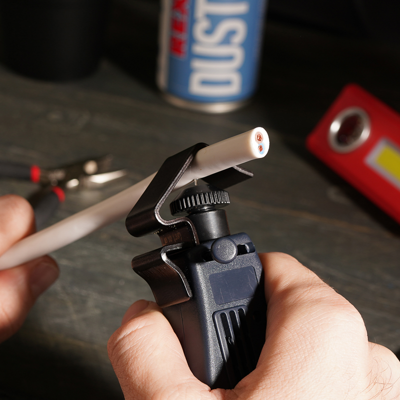 Корпус стриппера изготовлен из ударопрочного и износостойкого пластика, что облегчает работу с инструментом и снижает нагрузку на руку. Продольная зачистка гарантирует быструю и эффективную зачистку кабеля. Загнутое лезвие с рычагом вращения позволит с легкостью удалить отрезанную оболочку, а регулятор фиксатора кабеля позволяет настраивать фиксатор в соответствии с сечением кабеля. Пластиковая рукоятка благодаря специальной форме удобно лежит в руке и обеспечивает легкую и приятную работу с инструментом.
