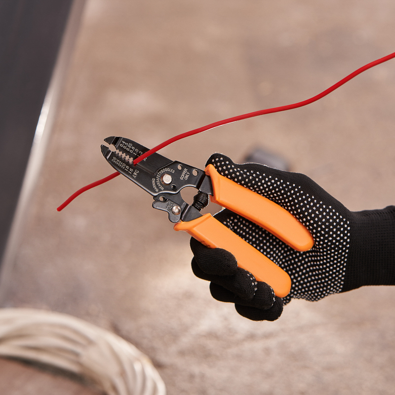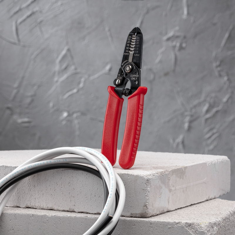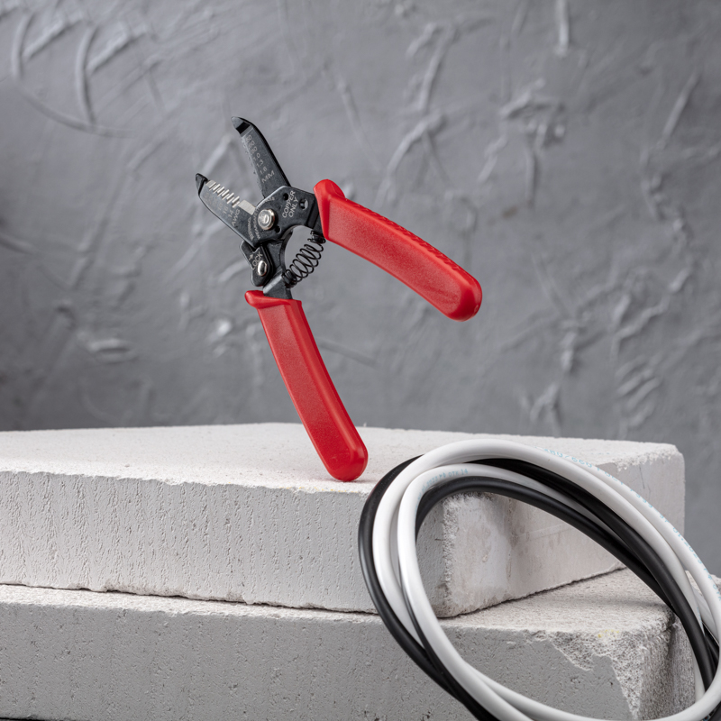 Корпус инструмента изготовлен из высокопрочной инструментальной стали, благодаря чему устойчив к механическим воздействиям и имеет продолжительный срок службы. Специальная конструкция инструмента с маркировкой позволяет зачищать изоляцию без повреждения жилы провода. Оснащен фиксатором закрытого положения и возвратной пружиной, которая обеспечивает обратный ход рукояток и упрощает процесс работы с инструментом. Также в стриппере предусмотрена режущая кромка для равномерной обрезки проводников. Двухкомпонентные защитные рукоятки выполнены из плотного нескользящего синтетического материала, который делает работу с инструментом легкой и приятной.
