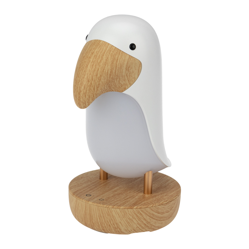 Интерьерный ночник Тукан с теплым белым свечением станет полезным и функциональным подарком. Ночник заряжается с помощью USB-кабеля. Устройство поддерживает соединение по Bluetooth и имеет динамик, что позволяет через телефон включать музыку или сказки. Интересная фигурка с мягким светом и возможностью диммирования – это отличное дополнение прикроватной тумбы или письменного стола.