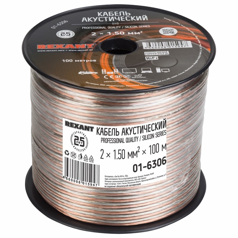 Акустический кабель SILICON 2х1,50 мм² REXANT предназначен для подключения профессионального звукового оборудования, которое используется в студиях звукозаписи, кинотеатрах, концертных залах и т. д. Отличается повышенной прочностью и надежностью.