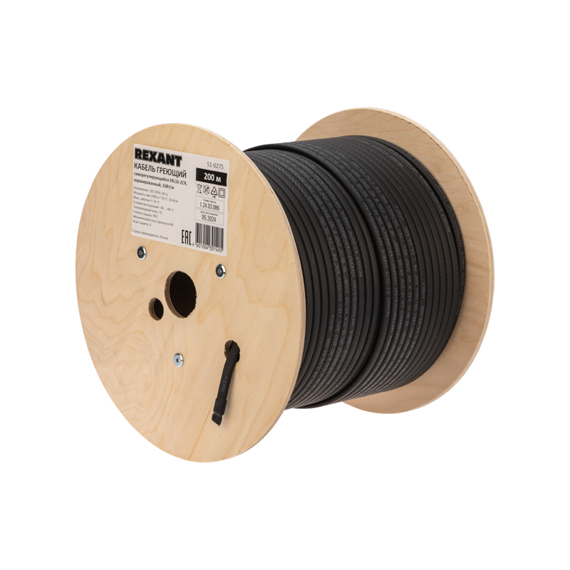 Кабель греющий (нагревательный) саморегулирующийся SRL16-2CR, экранированный, 16Вт/м, 0,9мм2/105м, бухта 200м REXANT