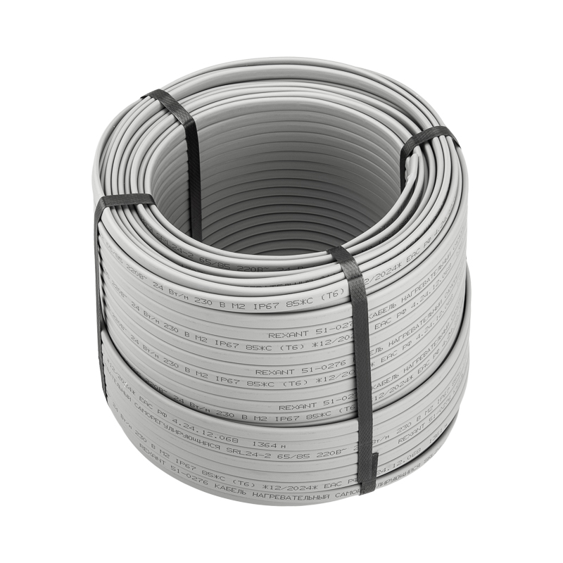 Кабель греющий (нагревательный) саморегулирующийся SRL24-2, неэкранированный, 24Вт/м, 0,9мм2/70м, бухта 100м REXANT