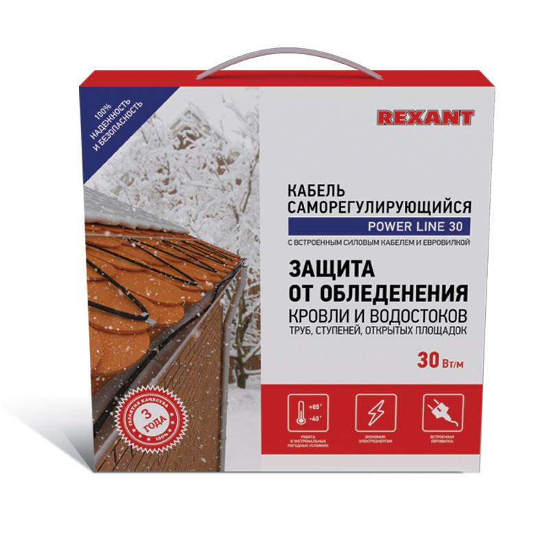 Комплект экранированного саморегулирующегося кабеля POWER Line 30SRL-2CR REXANT мощностью 30 Вт/м предназначен для защиты от замерзания бытовых трубопроводов, счетчиков воды, вентилей, а также могут использоваться для обогрева кровли и водостоков.