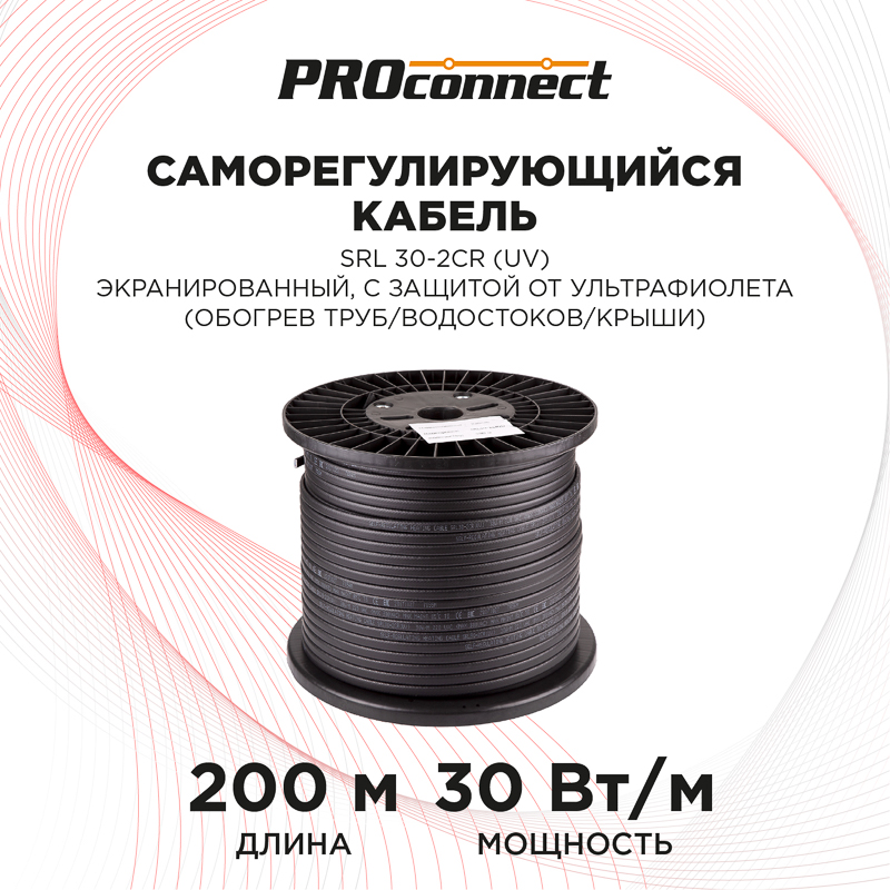 Нагревательный кабель PROconnect SRL 30-2CR мощностью 30 Вт/м применяется в качестве профилактики замерзания бытовых труб, счетчиков воды, вентилей и так далее. Является саморегулирующимся, и его теплоотдача зависит от окружающих условий. Повышение температурного режима приводит к снижению выделения тепла, и наоборот — холодный воздух провоцирует активность нагревательного элемента. Провод отлично подойдет для обогрева кровли и водостоков в зимнее время благодаря экранированию. Оснащен дополнительной защитой от ультрафиолета - оболочка выполнена из модифицированного полиолефина.