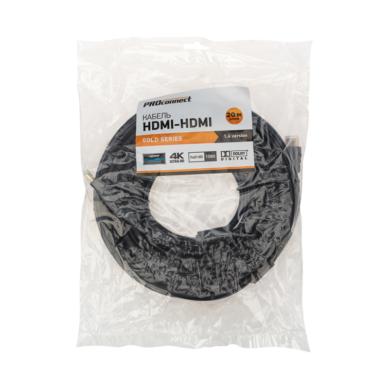 Кабель PROconnect 20 м предназначен для передачи цифровых видеоданных высокого разрешения и многоканальных цифровых аудиосигналов с защитой от копирования. Используется с телевизорами, компьютерами, ноутбуками, мультимедийными проигрывателями, регистраторами, игровыми консолями, видеокамерами и другими видеоустройствами.
