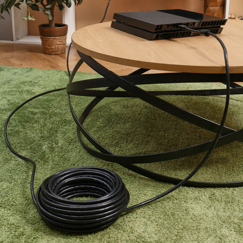 Кабель передает видео высокой четкости (Ultra HD) с максимальным разрешением (4K). Поддерживает 3D и расширенные цветовые пространства, что актуально для современных цифровых камер. Длина – 20 м.