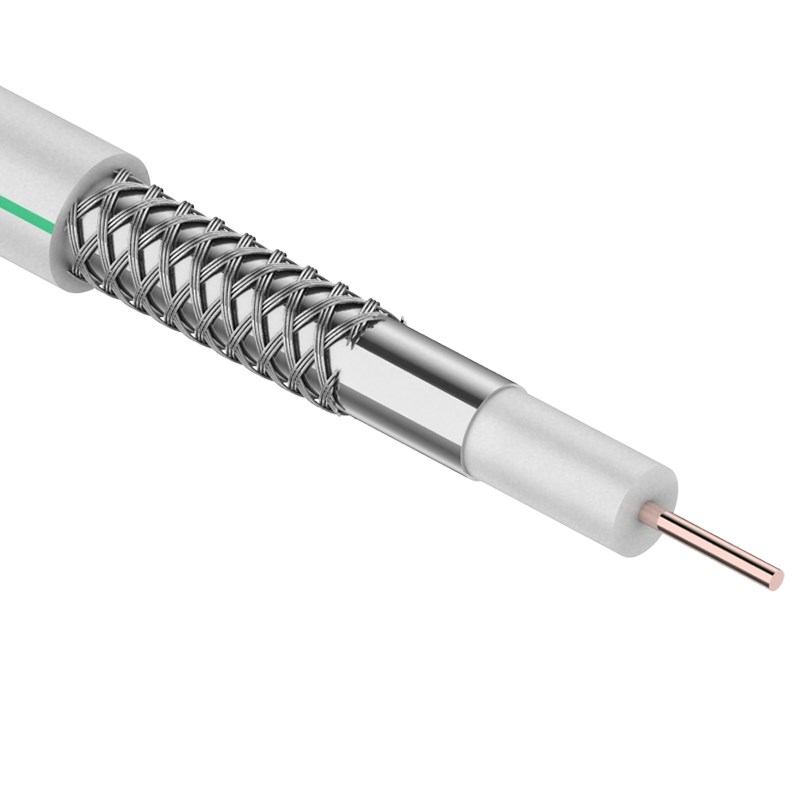 Конструктивно кабель состоит из центрального одножильного проводника, изготовленного из высококлассной меди и помещенного во вспененный полиэтиленовый диэлектрик.