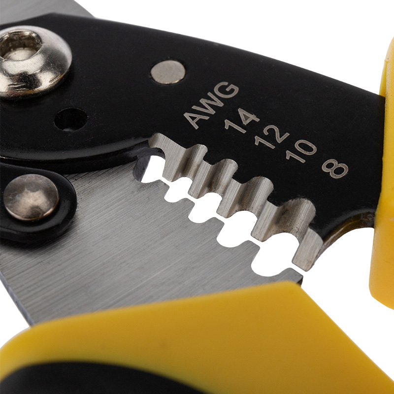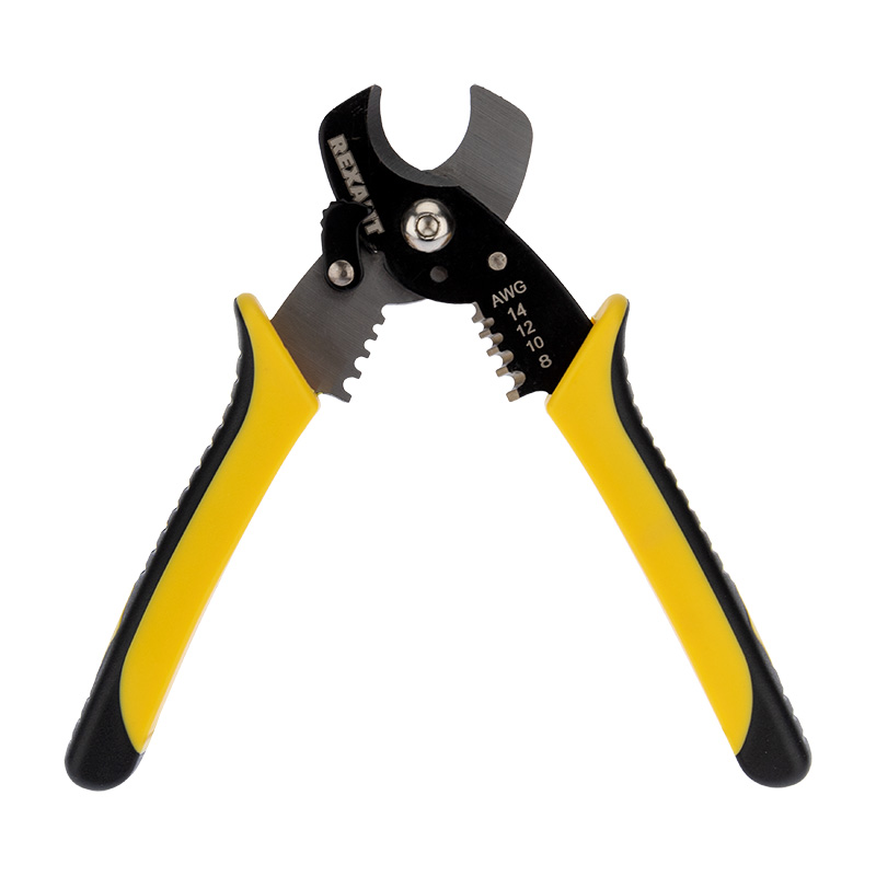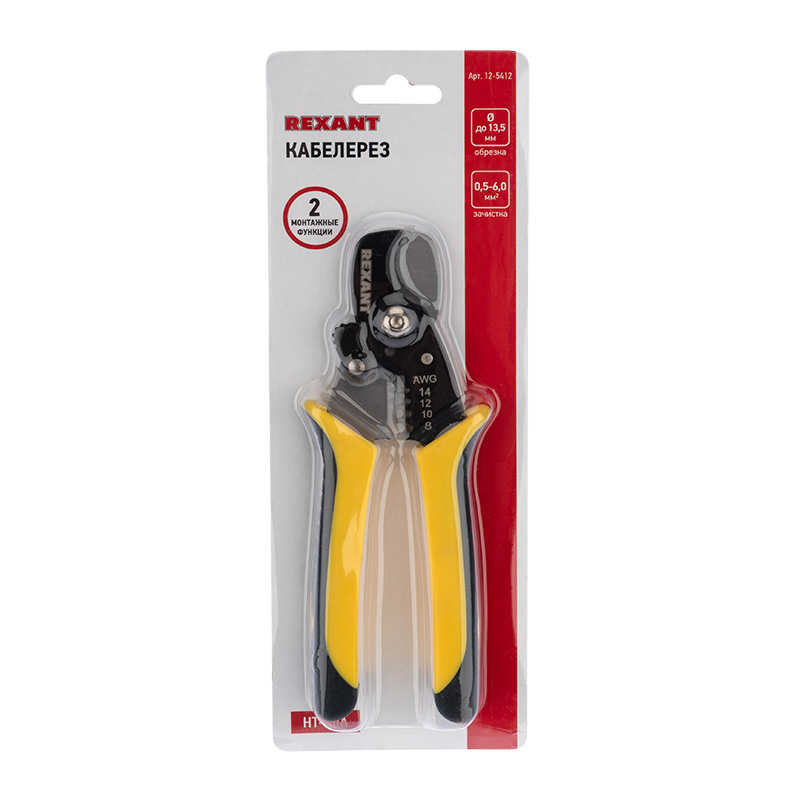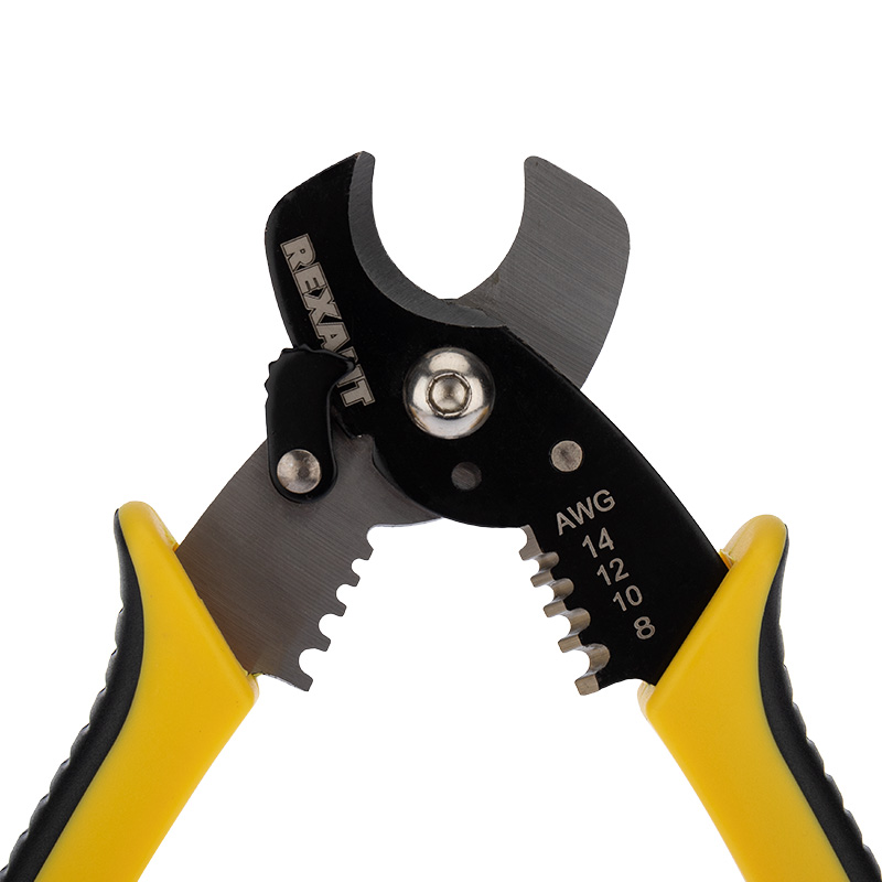 Корпус кабелереза изготовлен из высокопрочной стали. Лезвие для обрезки кабеля гарантирует чистый и аккуратный рез, а лезвие зачистки имеет удобную маркировку типоразмеров в рабочей зоне. Конструкция инструмента имеет фиксатор сомкнутого состояния для удобного и безопасного хранения и транспортировки, оснащен пружиной обратного хода рукояток и лезвия для быстрой и легкой работы. Двухкомпонентные защитные рукоятки с резиновыми вставками не дают инструменту выскальзывать из руки при работе.