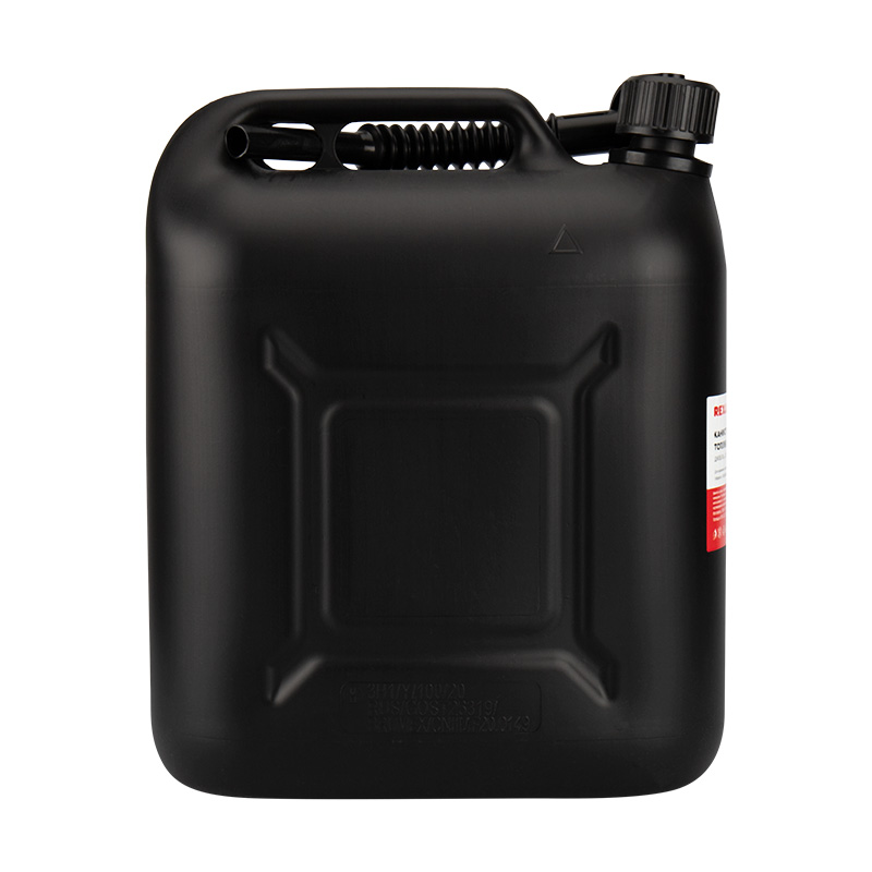 Канистра выполнена в черном цвете, на котором не видно разводов от дизельного топлива.