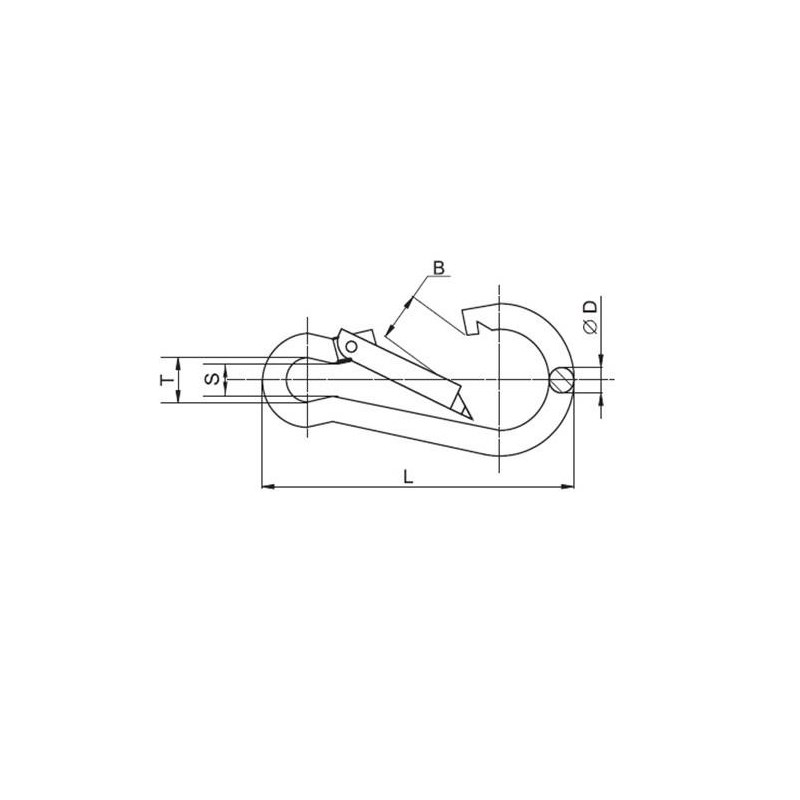 Карабин изготовлен из стали с цинковым покрытием, которое образует защитный барьер на поверхности металла, предотвращающий появление коррозии. При наличии пружинного фиксатора можно осуществлять быстроразъемное соединение, что позволяет быстро прикрепить или соединить вместе цепь или трос. Данный карабин не предназначен для подъема тяжелого груза.