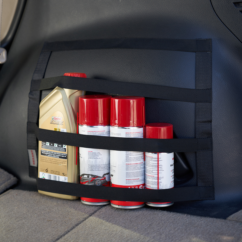 Изделие позволяет эффективно использовать пространство в багажнике, сохраняя порядок и предотвращая перемещение груза во время движения.
