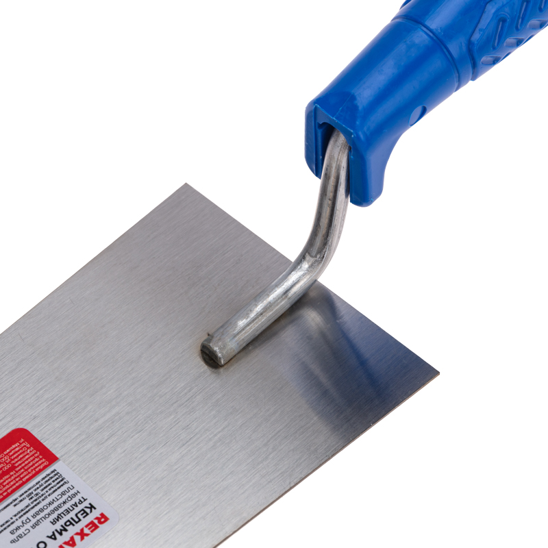 Кельма изготовлена из нержавеющей стали что обеспечивает отсутствие коррозии и долгий срок эксплуатации.