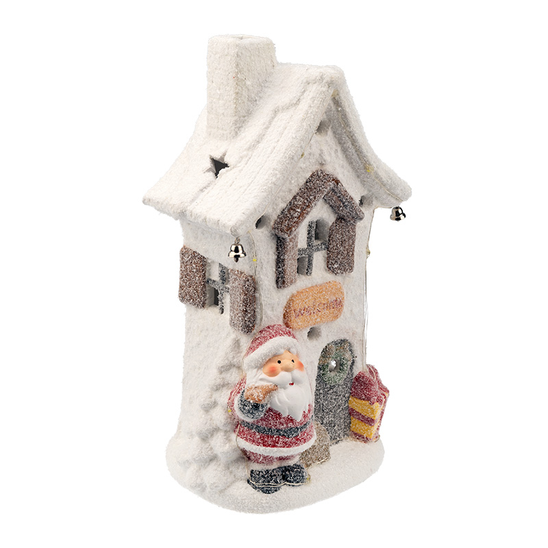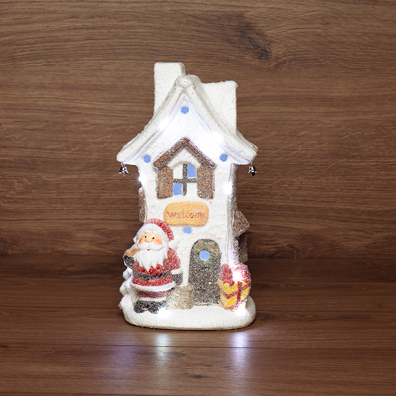 Керамическая фигурка «Белый домик» 15.7×11.7×28.4 см — интересное решение для оформления интерьера, которое поможет создать атмосферу уюта, почувствовать комфорт и тепло домашней обстановки. Экологичный материал, покрытый безопасным красящим составом, не вызывает аллергии, поэтому фигурка подходит для увлекательных детских игр. Милая композиция из домика, рядом с которым стоит Дед Мороз, подсвечивается 9 диодами, излучающими белый свет нейтрального оттенка. Декоративная фигурка работает от 2 батареек типа ААА.