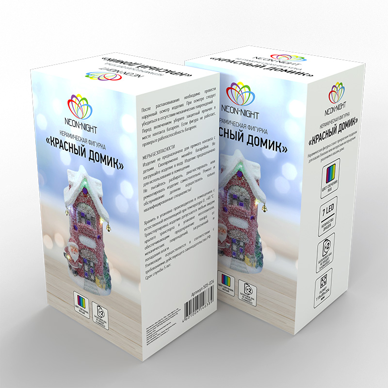 Керамическая фигурка «Красный домик» 11.5×8.5×20.4 см — не просто эффектный декор, поднимающий настроение, но и функциональный предмет, который отлично справляется с ролью ночника. 9 ярких светодиодов RGB, светящихся разными цветами, выделяют интересные детали, заставляя подолгу рассматривать сказочную композицию. Диоды экономичны, долговечны и абсолютно безопасны. В качестве элементов питания используются 2 мизинчиковые батарейки (тип ААА). Керамическая фигурка способна украсить любой уголок вашего дома, даже тот, где нет электрической розетки.