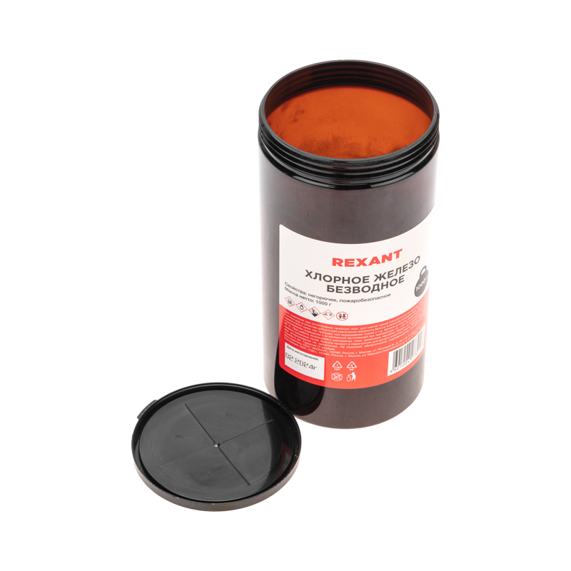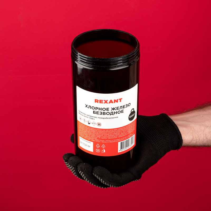 Безводное хлорное железо REXANT находит широкое применение во многих отраслях. В промышленности используется для изготовления печатных плат, очистки сточных вод, а также для снятия хрома, нанесенного на детали.