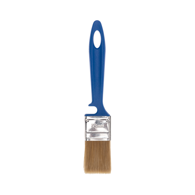 Качественная искусственная щетина обладает хорошими впитывающими свойствами. Она меньше подвержена износу, по сравнению с натуральным ворсом и отлично подходит для работ с лаками, с составами на водной основе и для работ по дереву. Эргономичная пластиковая ручка кисти удобна в применении.