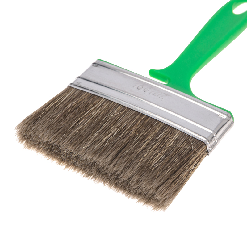 Кисть «Работы по дереву» отлично работает по шероховатым поверхностям, обладает износостойкой смешанной щетиной, отлично покрывающей дерево пропитками, глазурями и краской.