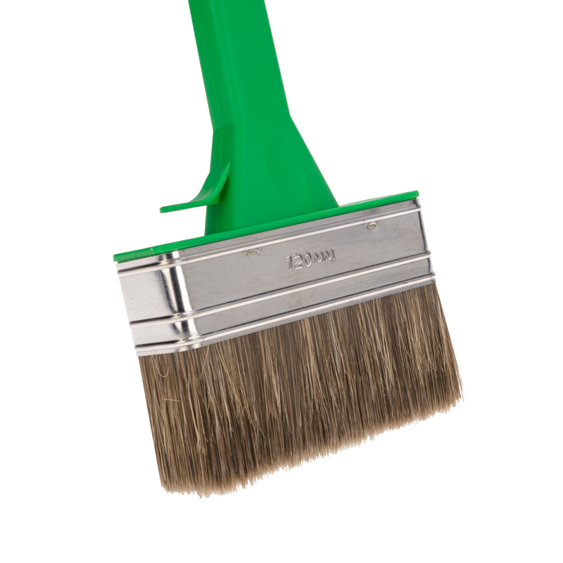 Может применяться с эмалями и для проведения фасадных работ. Эргономичная пластиковая ручка кисти удобна в применении. Широкая кисть позволяет равномерно прокрасить большие плоские поверхности, стены и потолки.