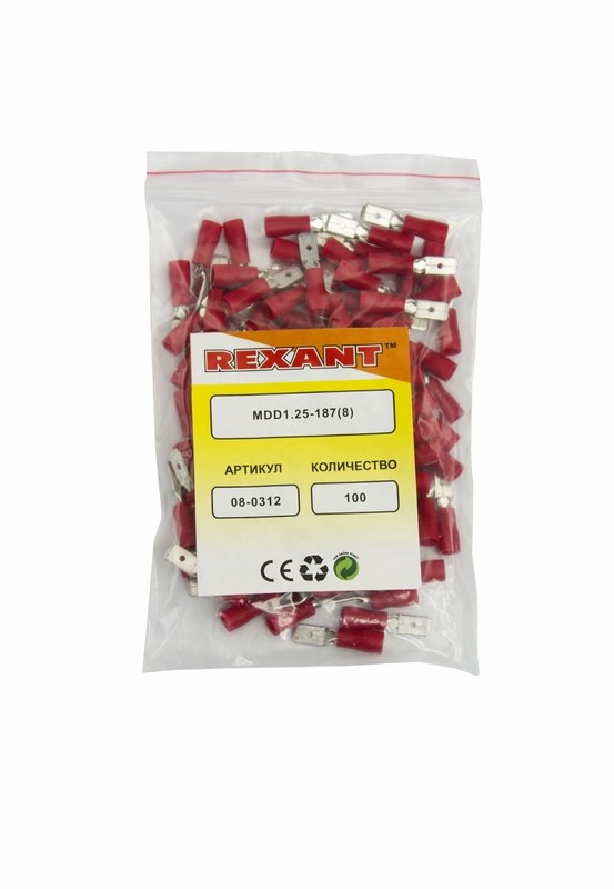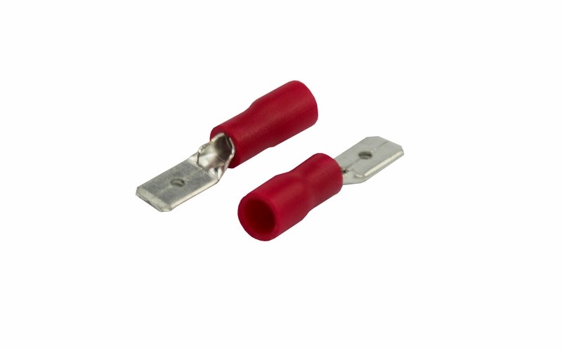 Изолированная плоская клемма REXANT состоит из двух компонентов: металлического коннектора (штекер) и защитного изолятора. Металлический коннектор изготовлен из латуни, с поверхностным электролитическим лужением, а изолятор клеммы - из поливинилхлорида (ПВХ), который надежно защищает место обжима кабеля. Обжатие производится специальными пресс-клещами (ht-301 H арт.12-3014, 12-3014; ht-301 N арт.12-3116; ht-301 W арт.12-3021, 12-3021-4) поверх защитного изолятора. Каждая клемма имеет отверстие, служащее фиксатором замкового типа для более прочного механического соединения с гнездовым разъемом. Цвет изолятора красный.
