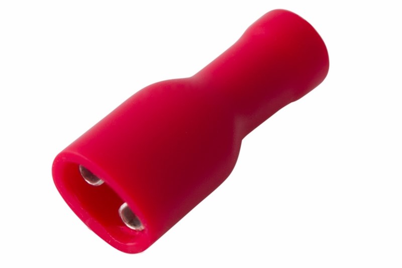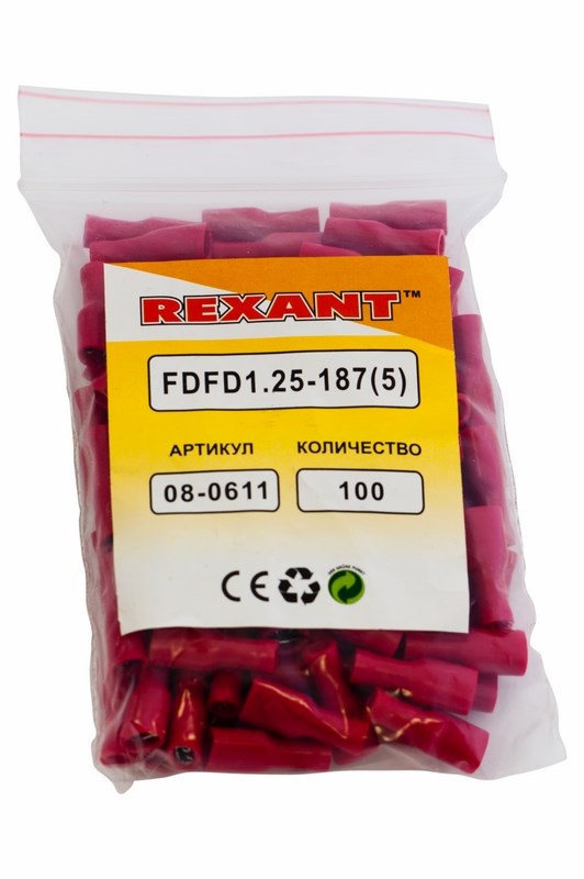Полностью изолированная плоская клемма REXANT состоит из двух компонентов: металлического коннектора (гнездо) и защитного изолятора, полностью закрывающий штекер. Металлический коннектор изготовлен из латуни, с поверхностным электролитическим лужением, а изолятор клеммы из поливинилхлорида (ПВХ), который надежно защищает место обжима кабеля и контактную часть. Цвет изолятора красный. Обжатие производится специальными пресс-клещами (ht-301) поверх защитного изолятора. Каждая клемма имеет фиксатор замкового типа для более прочного механического соединения с штекерным разъемом.