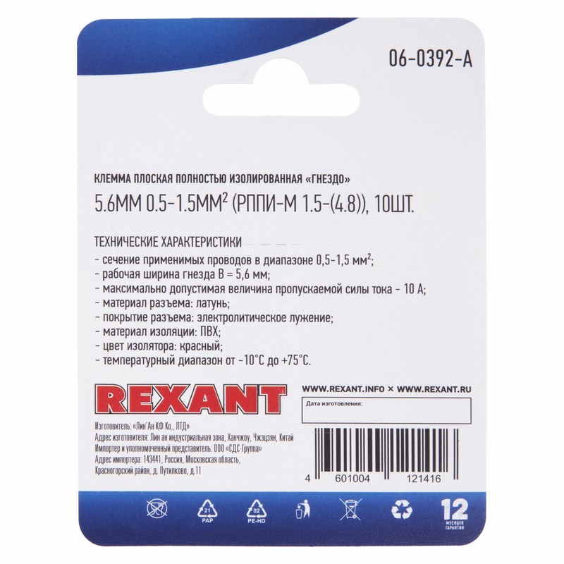 - рабочая ширина гнезда B = 5.6мм;