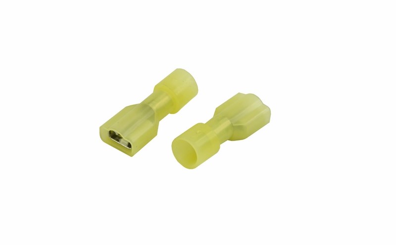 Клемма плоская полностью изолированная (КППИн гн - 6.6 мм) нейлон 4-6 мм² Yellow REXANT предназначена для создания качественного подключения электрооборудования или соединения проводов между собой, которое при необходимости, возможно разъединить без лишних усилий. Такая клемма используется для оконцовывания многожильных медных проводов при монтаже мобильных электрических контактных соединений на подвижном составе (автомобиле-, вагоно-, самолето- и судостроении) или в других местах, где важна надежность соединения (к примеру, телефонное или климатическое оборудование).