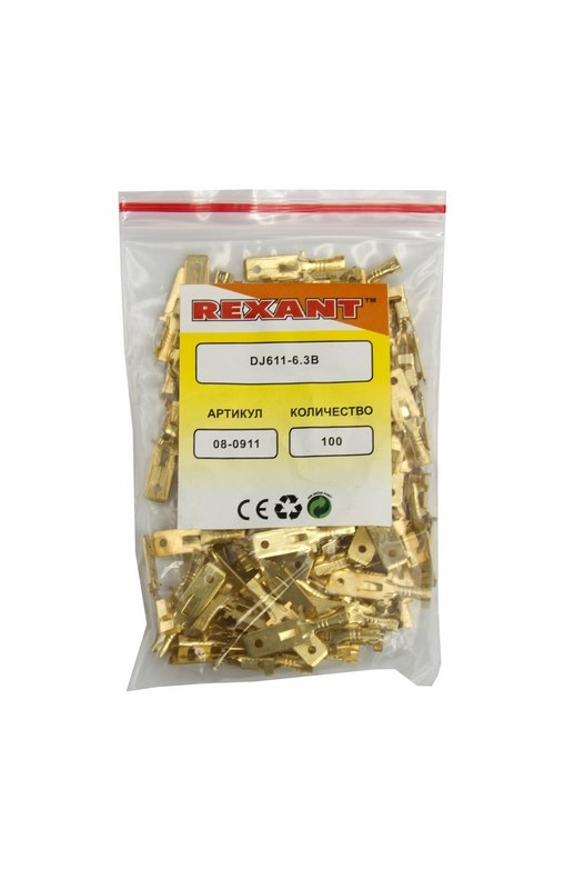 Клемма плоская неизолированная (штекер) REXANT изготовлена из латуни.