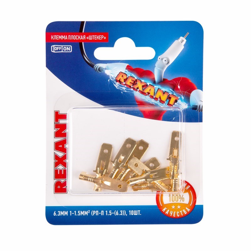 Клемма плоская неизолированная (штекер) REXANT изготовлена из латуни.