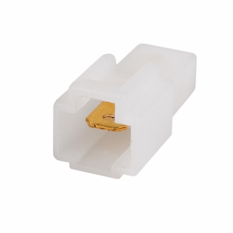 Клемма плоская (штекер) изготовлена из латуни. Колодка представляет собой корпус из ПЭ. Обжатие производится специальными пресс-клещами (ht-202; ht-230; ht-301) по жиле и по изоляции, что обеспечит максимальную прочность соединения с проводом. Каждая клемма имеет отверстие, служащее фиксатором замкового типа с гнездовым разъемом.