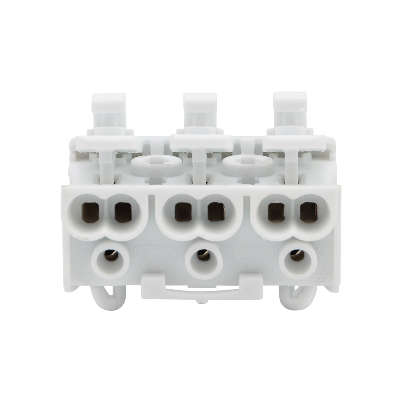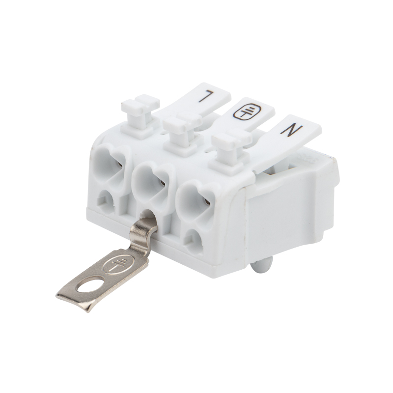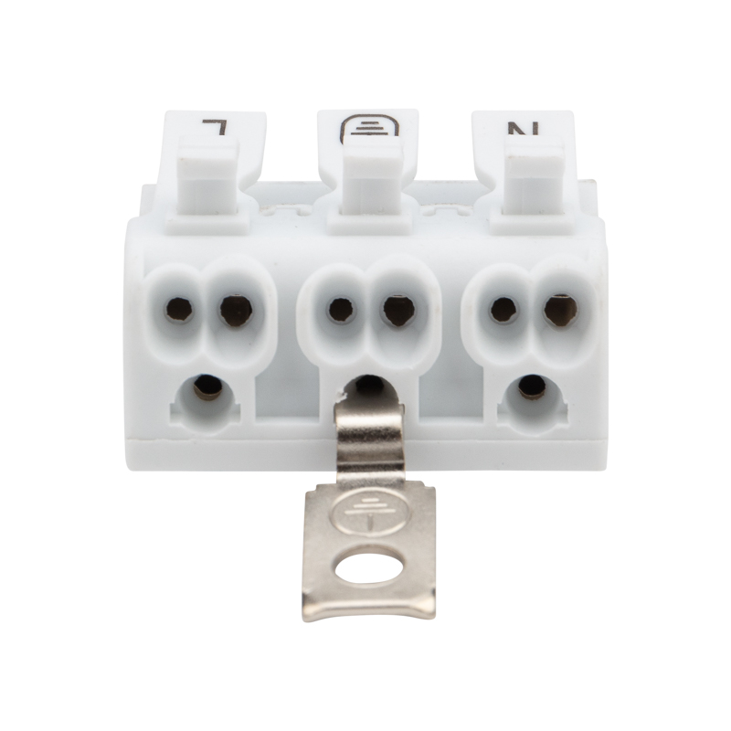 Пружинные трехполюсные клеммы с заземлением и с монтажными ножками REXANT предназначены для присоединения и ответвления одножильных и многожильных медных проводников в электрических цепях переменного тока напряжением до 450 В. Наличие маркировки («фаза», «ноль», «земля») на подвижной части зажима, наличие монтажной ножки и винтовой контакт заземления. Материал корпуса – самозатухающий ПВХ, материал контакта – электротехническая сталь.