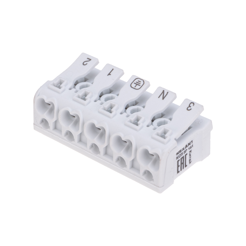 5. Количество полюсов - 5. 6. Наличие маркировки («фаза», «ноль», «земля») на подвижной части зажима. 7. Температурный диапазон в режиме эксплуатации: -60... +40 ℃