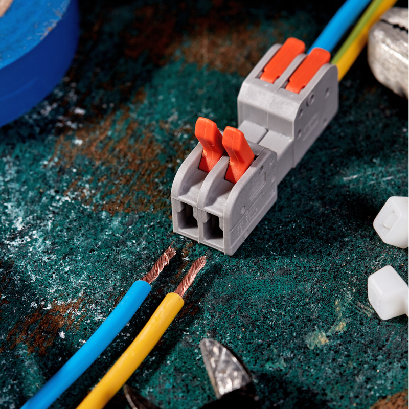 Многоразовая проходная клемма СМК REXANT с разъемным соединением предназначена для соединения медных одножильных и многожильных зачищенных проводников. Контакт осуществляется путем зажима проводника пластиной. Конструкция предотвращает случайное размыкание контакта.